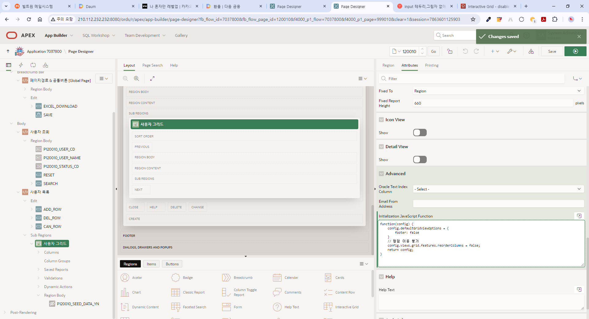 | ● 그리드 선택 > Attribute ● Advanced - Initialization JavaScript Function |