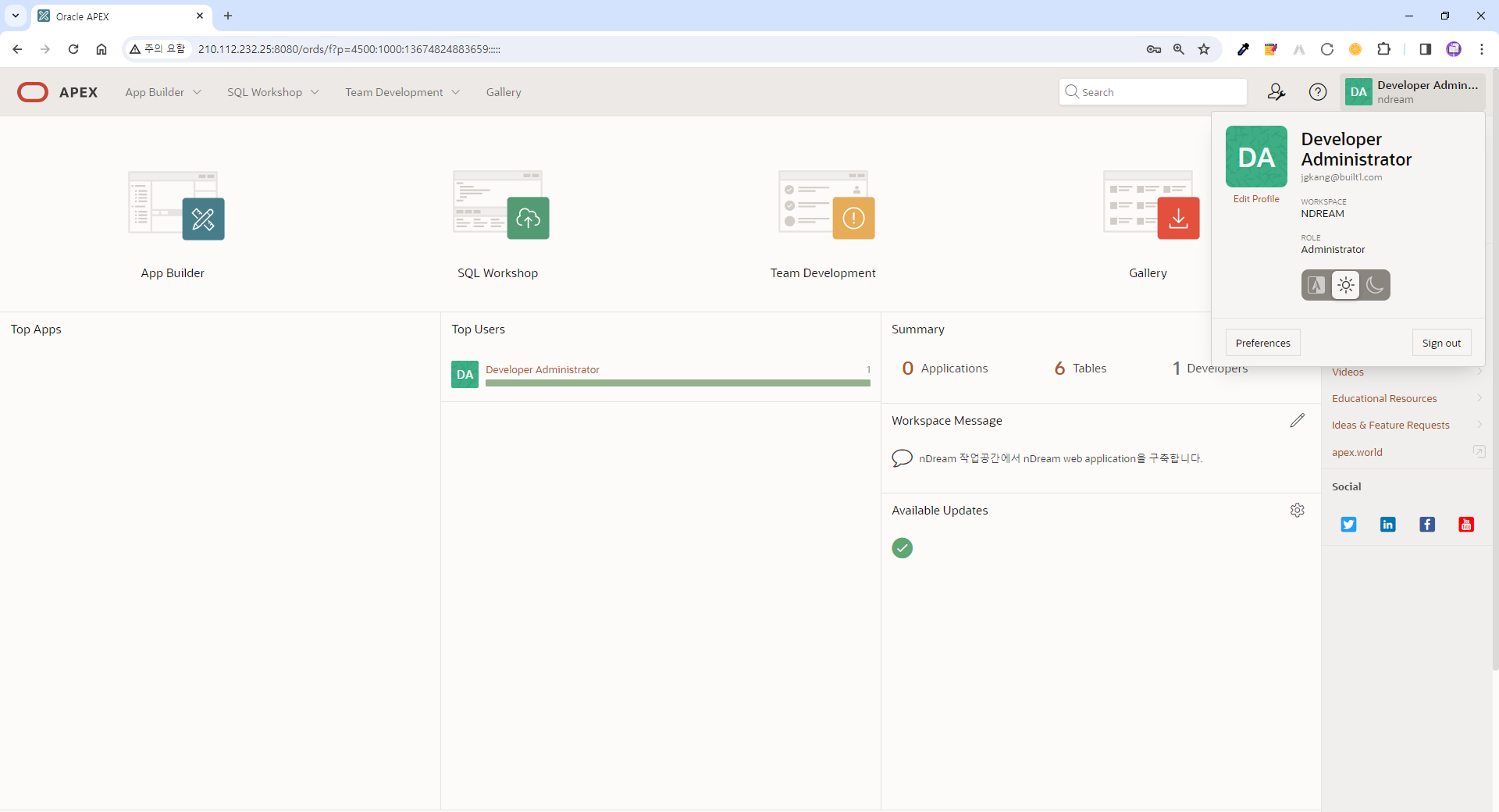 | “nDream” 워크스페이로 로그인 하였습니다. |