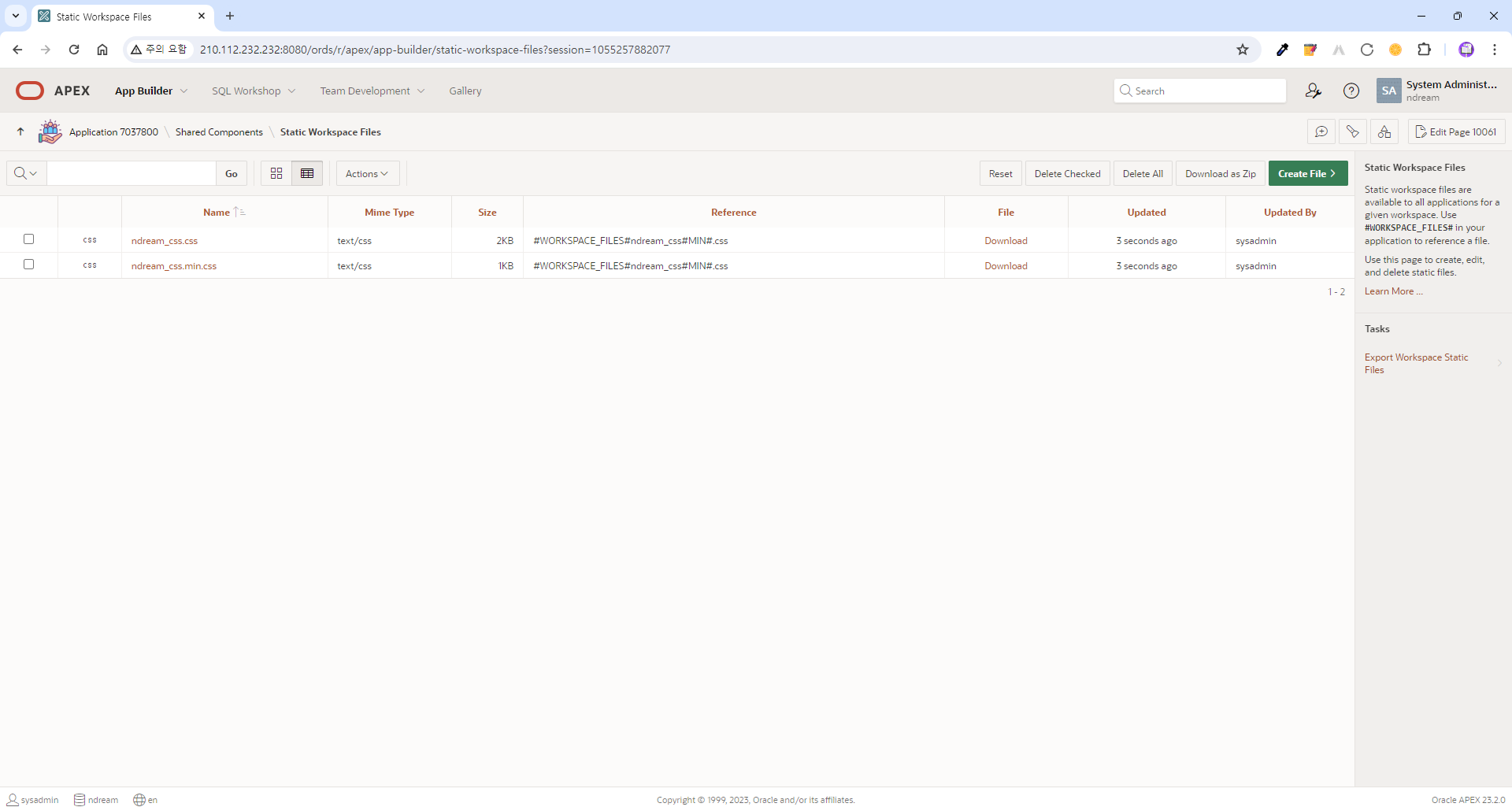 | 애플리케이션에 일괄 반영을 위하여 "Create File" 버튼을 클릭합니다. |
