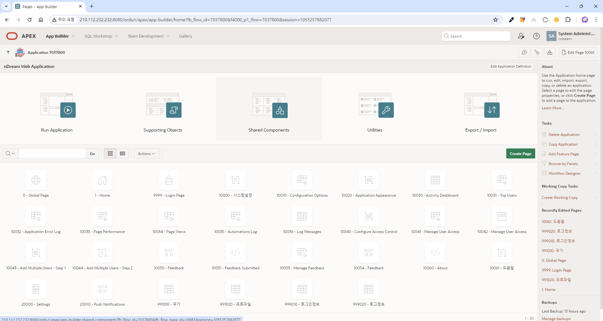 | 애플리케이션에 일괄 반영을 위하여 "Shared Components" 버튼을 클릭합니다. |