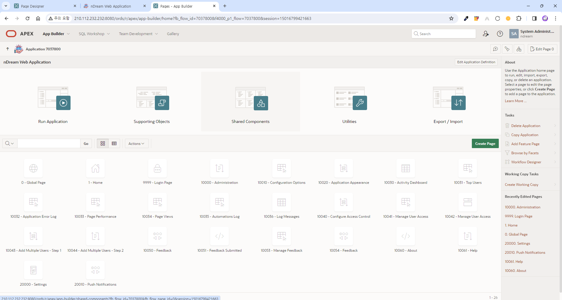 | 글로벌 변수 생성하기 위하여 "Shared Componets" 버튼을 클릭합니다. |