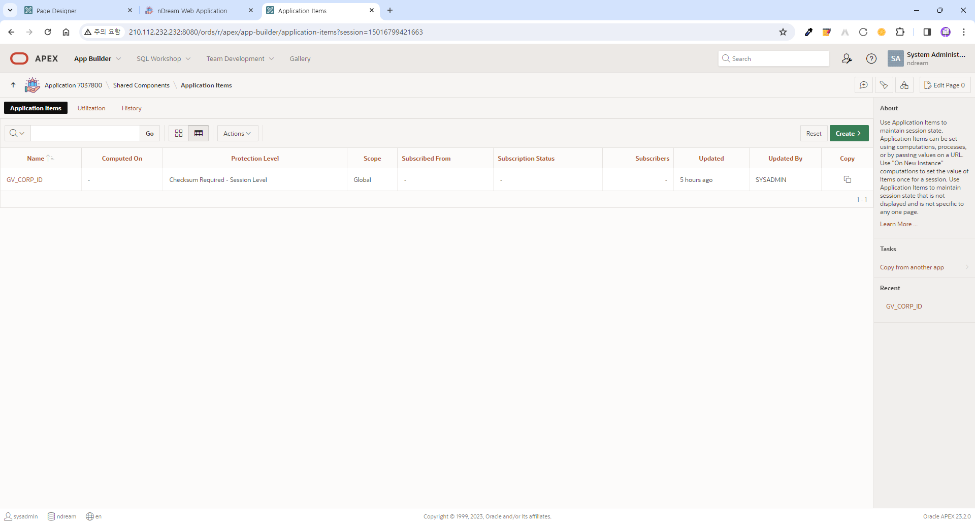 | 글로벌 변수 생성하기 위하여 "Application Items" 버튼을 클릭합니다. |
